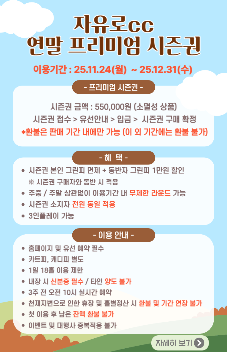 12월 골프패키지 및 리조트 부대시설 이용안내