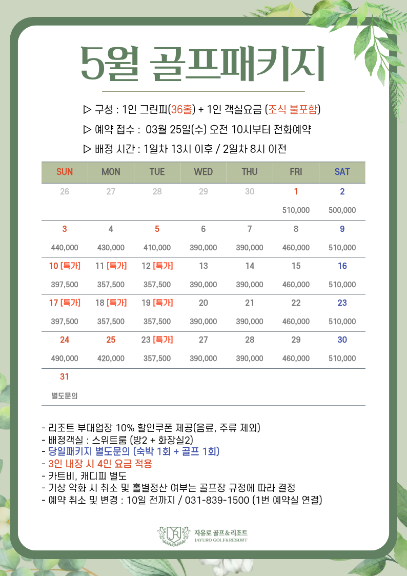 제목 : 26년 5월 골프패키지 및 리조트 부대시설 이용안내