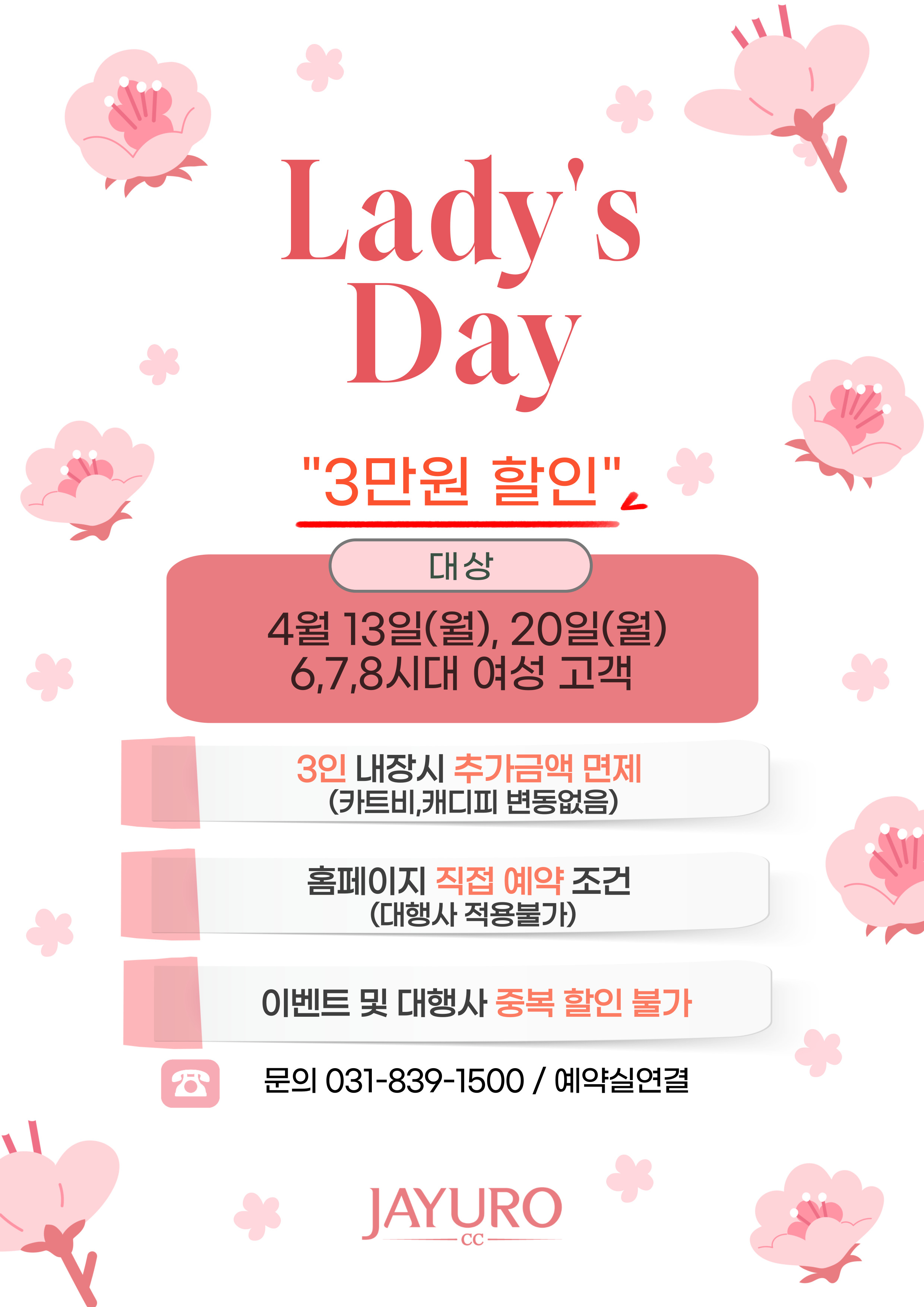 제목 : 4월 13일(월), 20일(월) 레이디 데이 이벤트