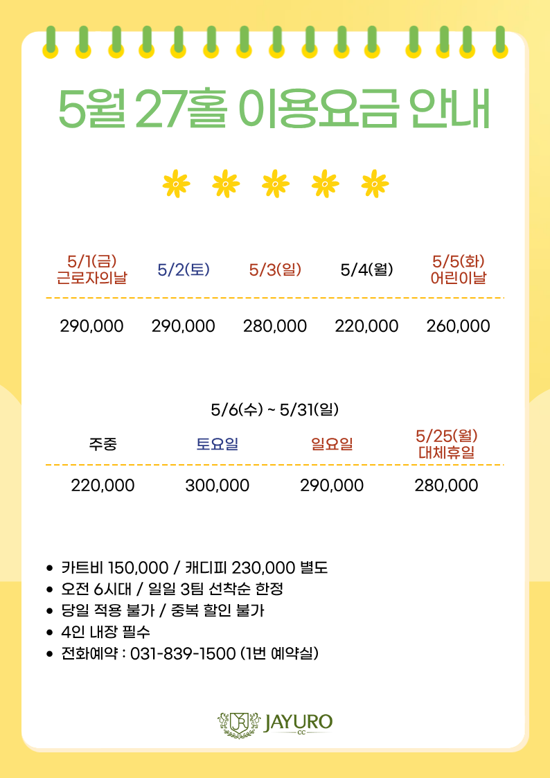제목 : 26년 5월 27홀 이용안내