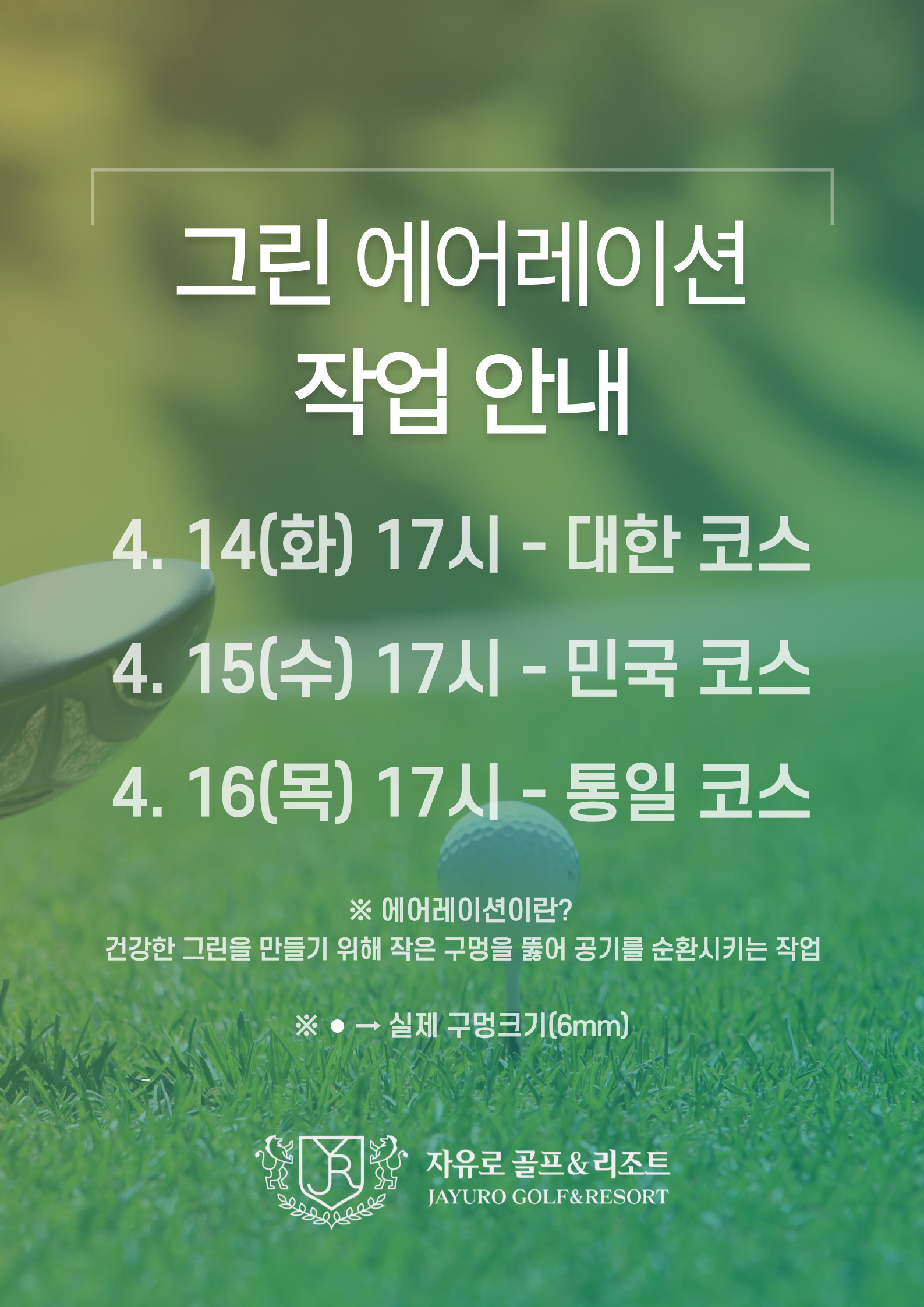 제목 : 26년 4월 그린 에어레이션 작업 안내