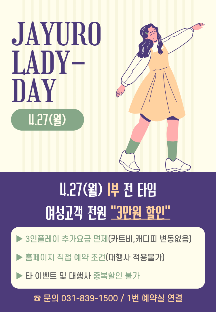 제목 : 26년 4월 27일(월) 레이디스데이 이벤트