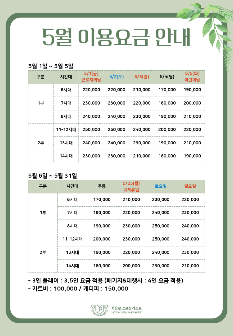 26년 5월 골프패키지 및 리조트 부대시설 이용안내